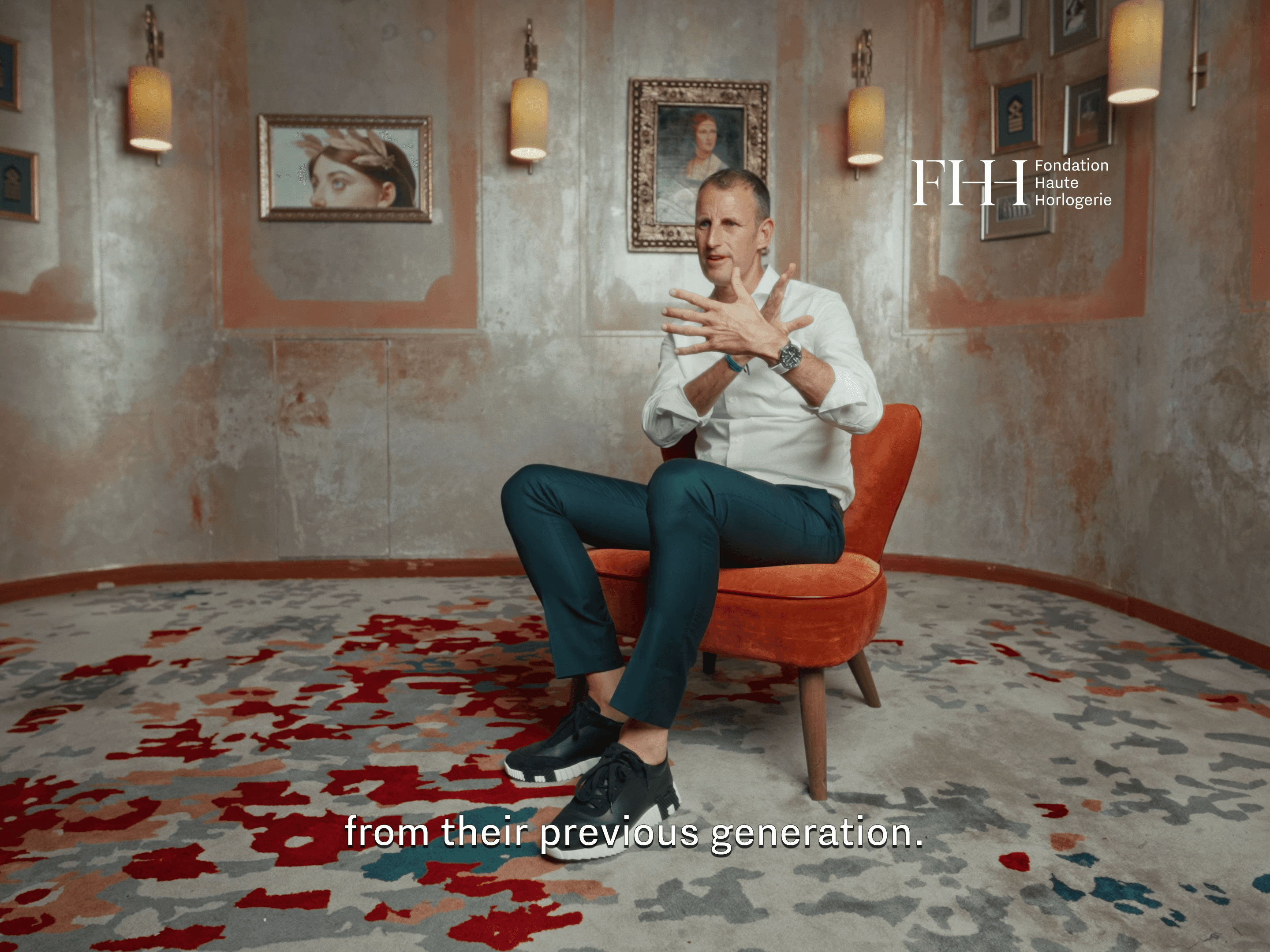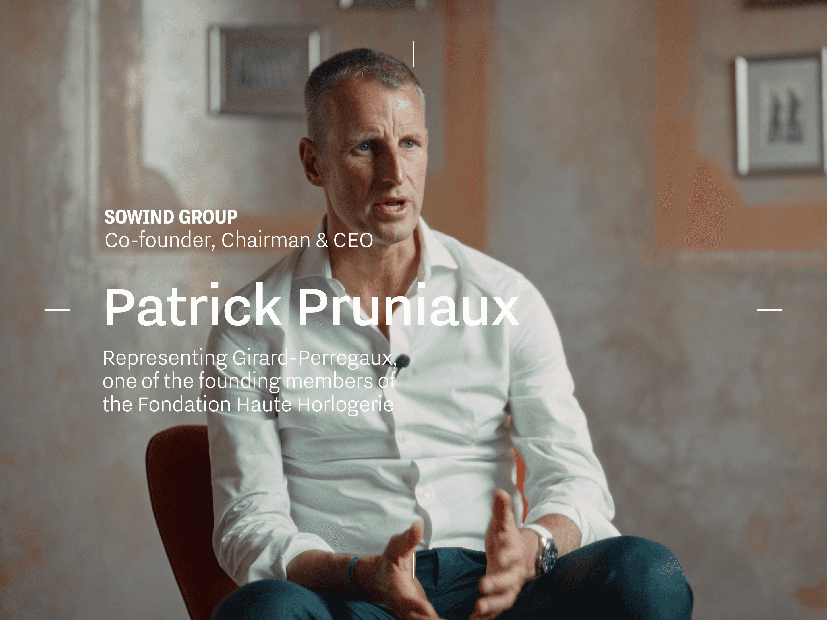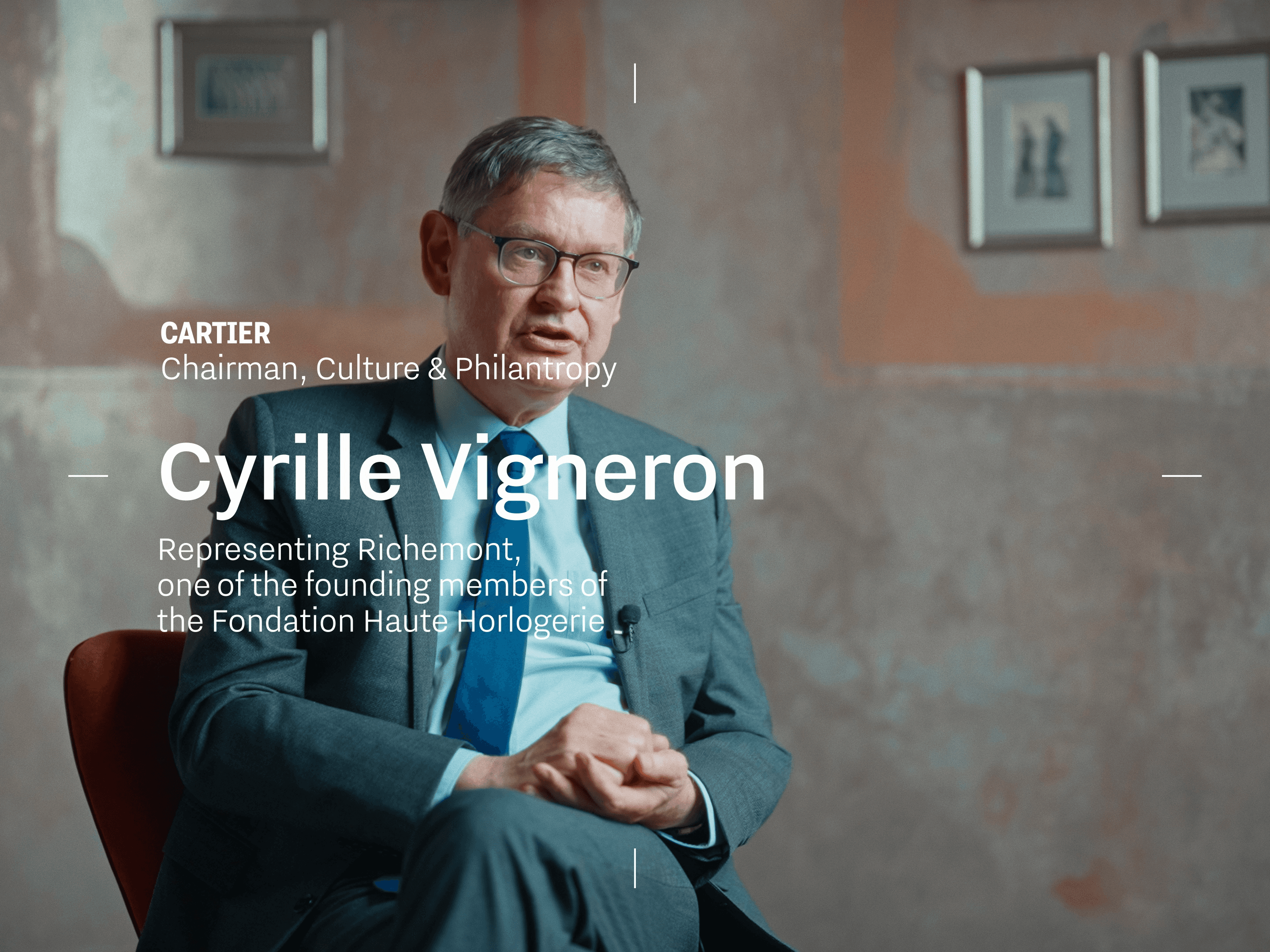 Twenty years after its founding, the Fondation Haute Horlogerie gathered the three CEOs representing its founding maisons: Ilaria Resta (for Audemars Piguet), Patrick Pruniaux (for Girard-Perregaux), and Cyrille Vigneron (for Cartier). The brief was intimate and the timeline was brutal. We were handed the hotel bar between two events and decided to strip it bare. No styling, no set dressing : just the person, the walls, and twenty years of history to hold it all together. On a day that asked a lot of them, they gave us their full attention and each CEO left the chair a little lighter than when they sat down.